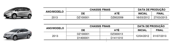 Na Honda esta é a quarta convocação para o City e a sexta para o Fit, por causa do mesmo problema, desde 2004.